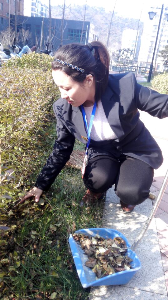 带领员工清理绿化带杂草